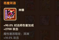 辉煌神器:目前只有十个,恶魔铃铛、鹿角手杖、打神鞭、石魔剑、奥古斯魔球、幽灵之吻、幸运糖果棒、燎原之炬、黄金之冠、玉如意。这些神器效果和通用性上,要强于其他橙色神器,目前几乎只能通过氪金或活动获得。