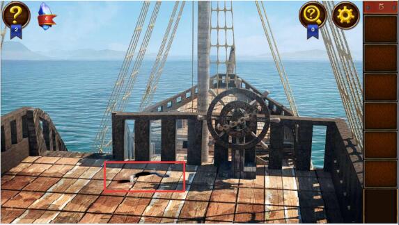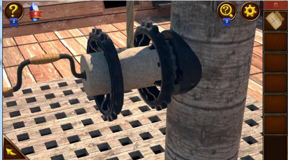 1、第五关出现在了甲板上面,首先捡起木板上的摇手。