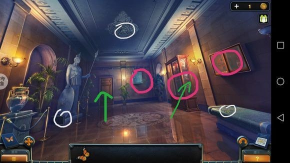 4、记录一下羊皮纸上面的图案,然后点击左边的望远镜。