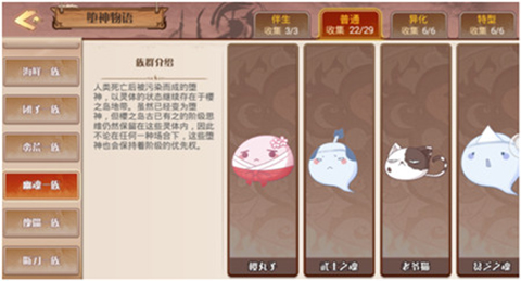 普通堕神的存在感可能还不如【伴生】,没错,默默的站在大BOSS后排充当小弟的普通堕神基本属于BOSS辅助,由于“老大”倒下后这些都是被迅速消灭的角色,导致很多玩家容易忽视它们的存在,其实从图鉴上看,这些普通堕神还是相当Q萌的,可能非常适合当宠物来养。