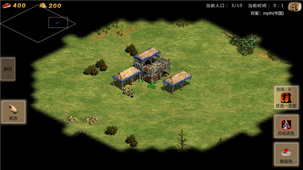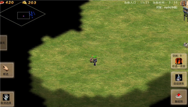 3、进入游戏,可以单选农民也可以点击框选按钮,选择范围内农民;
