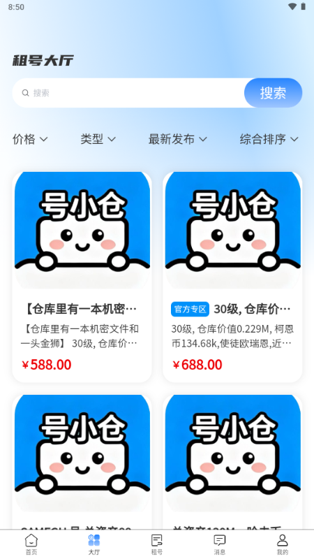 号小仓APP是一款专业的账号交易服务平台,致力于为用户提供安全可靠的虚拟交易体验。作为全网顶尖的账号交易平台,号小仓不仅提供游戏账号交易,还通过优质的服务帮助用户改善生活。平台强调服务质量,提醒用户认准官方平台。