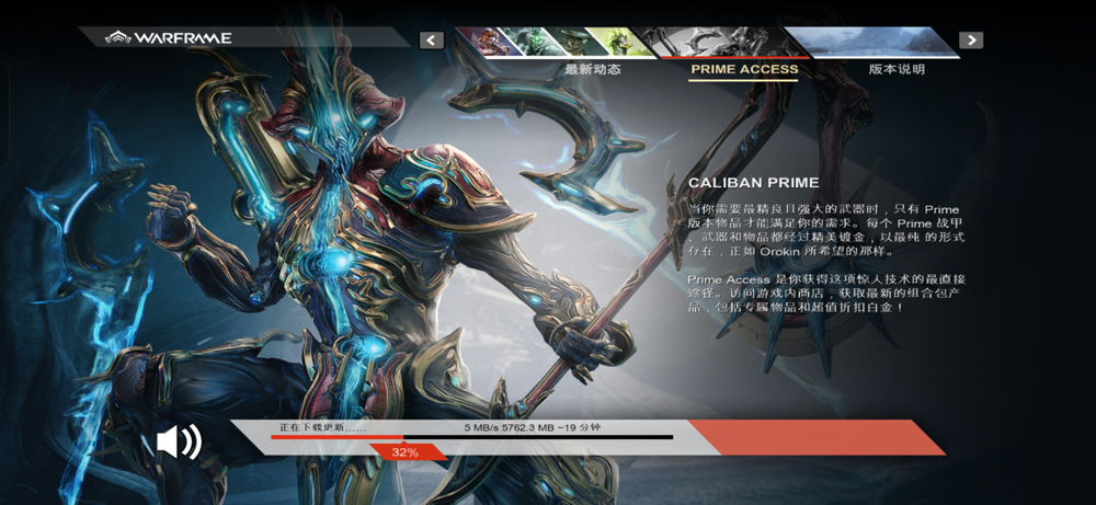 1、打开星际战甲国际服手游,游戏需加速器启动,启动后需下载部分资源文件;