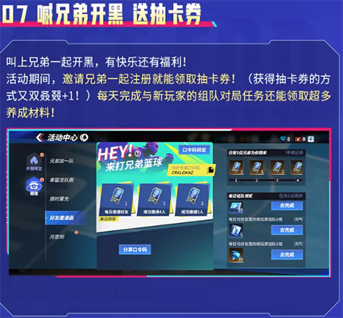 5、喊兄弟开黑,送抽卡卷。