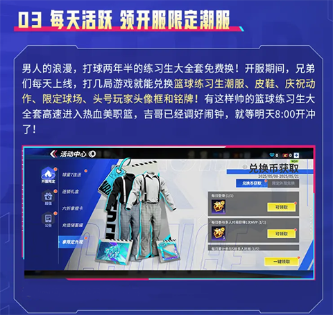3、每天活跃,领开服限定潮服。