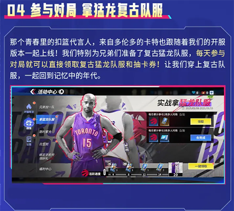 4、参与对局,拿猛龙复古队服。