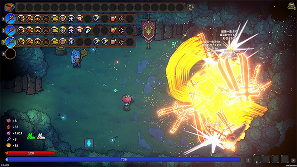 7、另外,关底还有着强大的BOSS敌人,击败后可获取大量奖励,最后当角色生命值清空则结束。