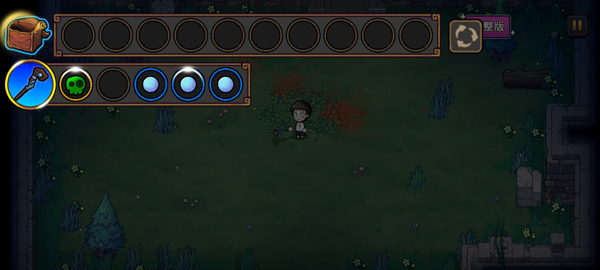 4、玩家需操纵角色进行冒险,消灭地图上的怪物,怪物会掉落遗物,可装备在角色法杖上,提升伤害和属性;