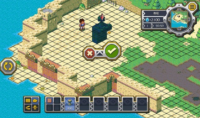 4、当剧情推进一定程度后会进入战斗模式,战斗时点击左下方可以切换放置的建筑,点击对应建筑后再次点击绿色对勾按钮可以放置建筑。
