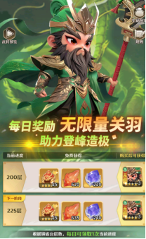 购买后「无限量关羽」后可根据「铜雀台」通关层数领取对应数量「无双」武将「关羽」。