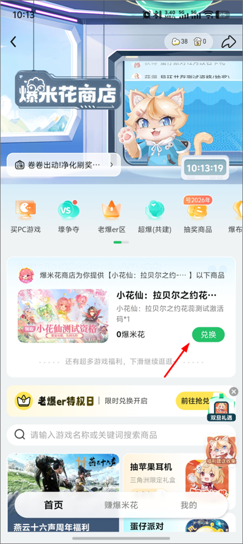 2、进入爆米花商店后,点击兑换;