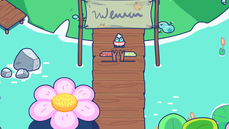 3、你需要在一个宁静的池塘里建造并定制一个豪华露营地,吸引青蛙和其他性格各异的访客。每位访客都有自己的喜好,有的喜欢钓鱼,有的喜欢日光浴或喝蘑菇汁。