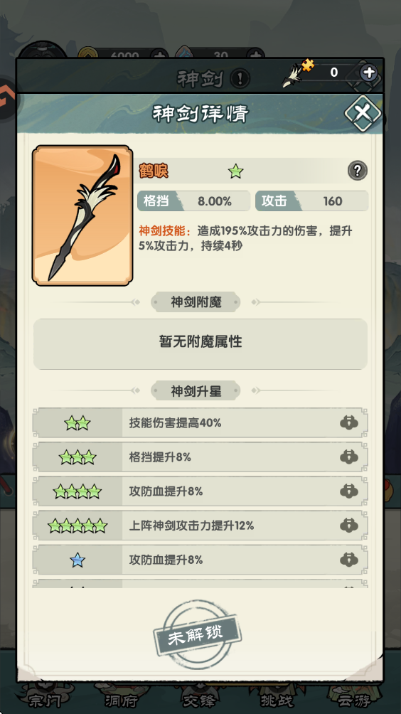 神剑技能:造成195%攻击力的伤害,提升5%攻击力,持续4秒