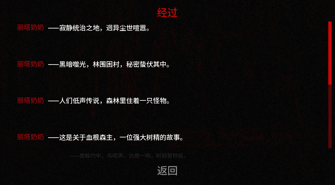 《血根森主》是一款斯拉夫神话背景的俄罗斯视觉小说恐怖游戏,包含多路线、多结局、小游戏以及以及一些刁钻成就的本作拥有传统视觉小说所有的历史回顾、即时存档等一切功能,同时采用了可调整的大红色滤镜来凸显叙事基调。