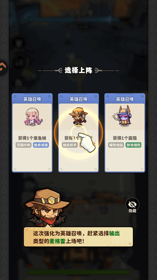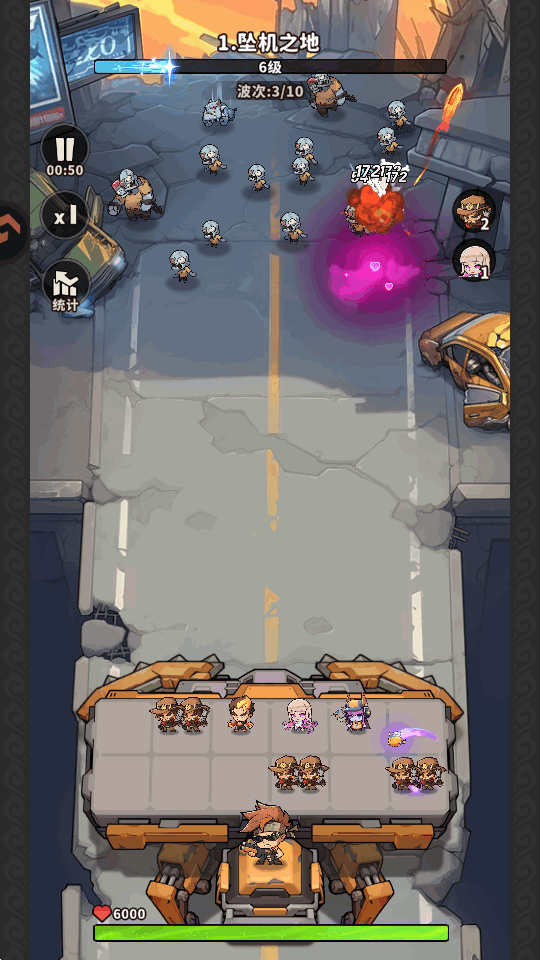 3、敌人死亡后会掉落经验,每次升级可选择上阵英雄或技能