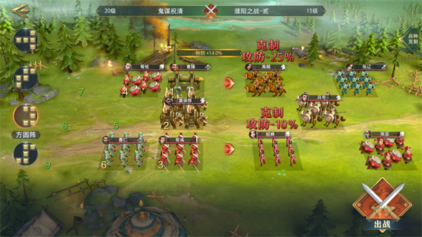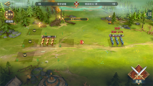 -本关可选两个阵型,锋矢阵可增加上阵武将的战法攻击,鹤翼阵可增加上阵武将的战法防御。