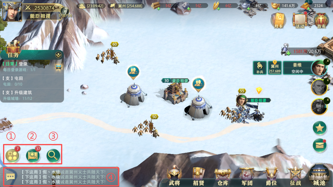 另外,演义里面的资源(招贤令)非常多,一定要拿,但不急于拿。