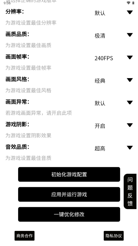适配低端机,中低端机,中高端机,高端机。有低音质,中音质,高音质等不同设置,还能根据不同处理器,细化到型号,做不同优化。根据骁龙、麒麟、联发科等不同处理器,适配不同专属优化。还能特定优化钢枪、解锁高帧高画质。