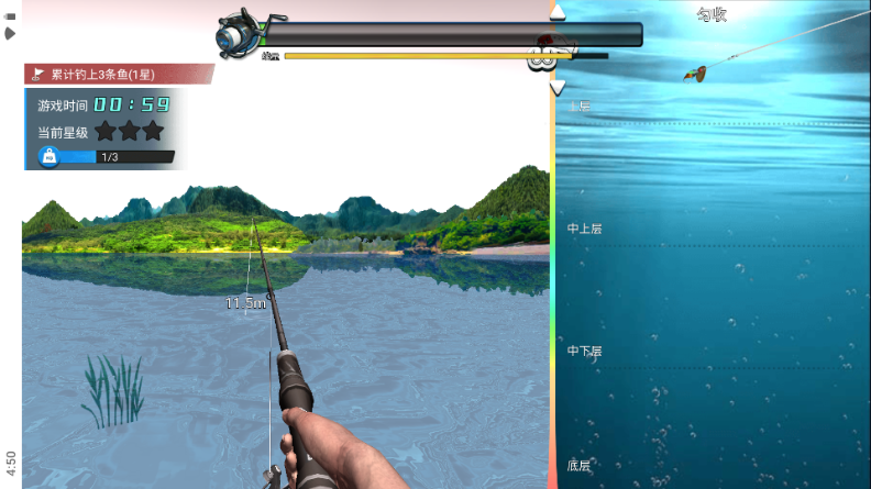 3、疯狂点击屏幕就可以收线;