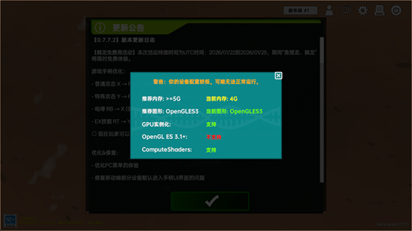 1、进入游戏内会检测我们的设备,不过就算小编配置较低也是可以正常游玩哦。