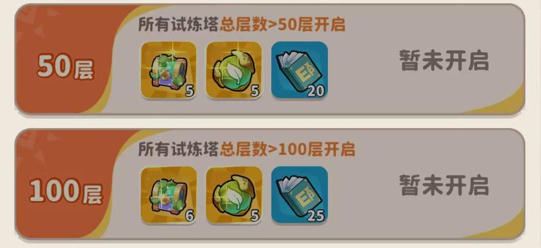 3-扫荡奖励:每日可进行1次扫荡,总层数由所有属性的试炼之塔叠加计算,每50层卡开放一档奖励内容