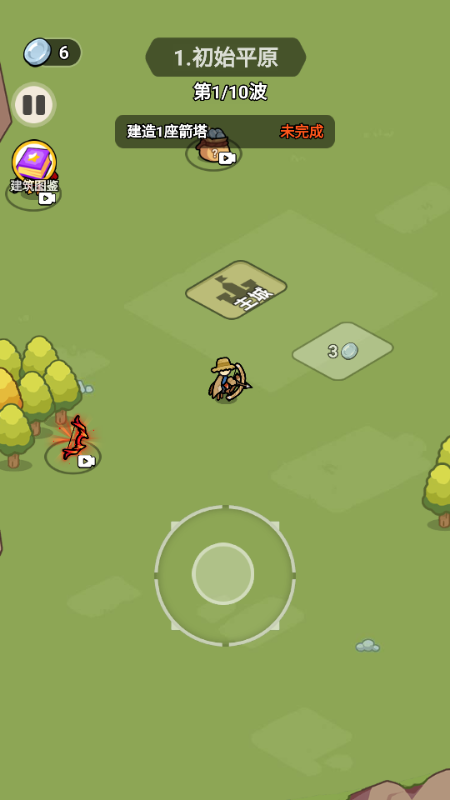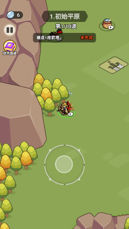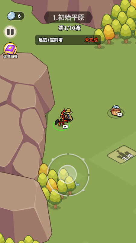 4、拖动摇杆移动来这,建造主堡吧