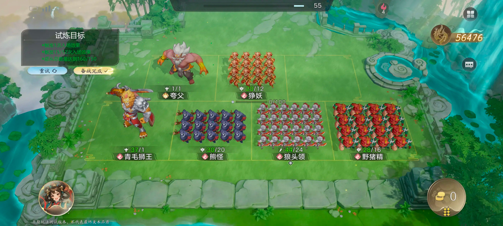 纯射阵容未改动,参考一测攻略及游戏内珠泪哀歌即可(区别是不要朱雀,一定带一个神射手,打开阵容编辑加个神射进去)