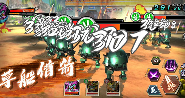 2、宝三国中经典的诸葛亮草船借箭,在游戏中变成了一次性大范围箭雨AOE,对大量敌人造成密集伤害