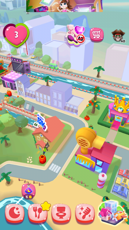 当我们拥有足够的飞行代币后,就可以进行旅行了!有很多景点都可以去,安吉拉也会为我们带来很多奖励,比如金币和钻石。在安吉拉的城市内,我们可以去蛋糕店制作蛋糕,去音乐厅弹奏乐器……在游戏里面按照提示就可以让安吉拉玩得开心哦!