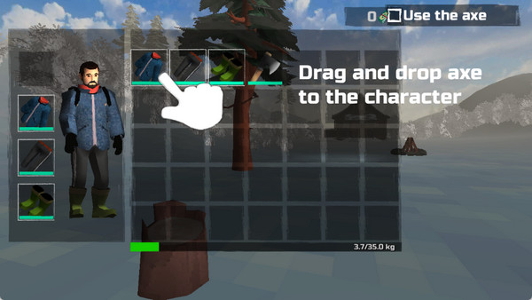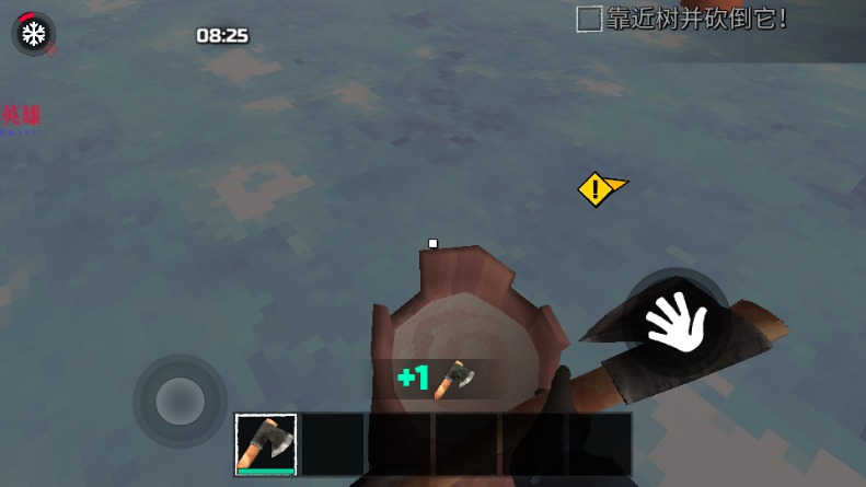 3、拿到之后在下方的道具栏会有斧头,然后靠近树木就会自动砍