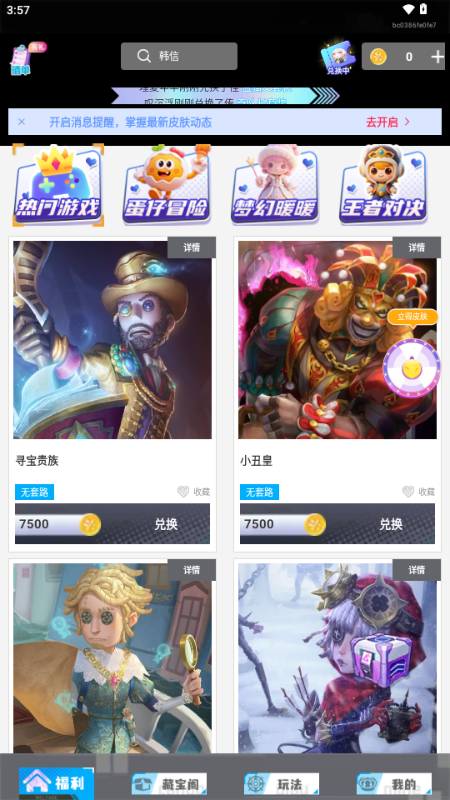 编辑点评:免费领皮肤的软件。