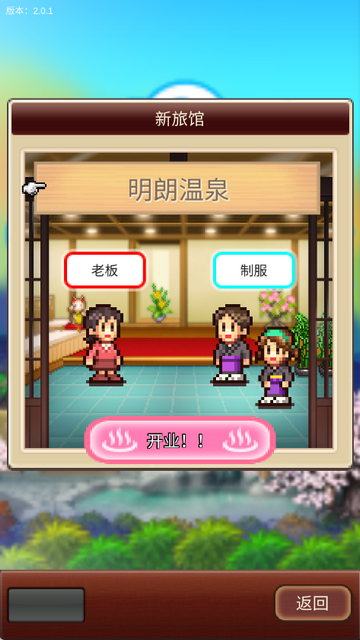 温泉物语2是一款以温泉为题材的模拟经营类游戏,游戏延续开罗游戏经典画面设定,采用卡通像素风格制作,拥有多种不同游戏场景、丰富玩法内容和真实人物角色,玩家将扮演温泉店老板,配置各类设施、装饰房间、升级建筑与设施等级,打造超人气旅馆,吸引顾客前来体验,提升客户满意度与店铺效益,体验当老板的乐趣,沉浸式感受温泉小镇的经营氛围。