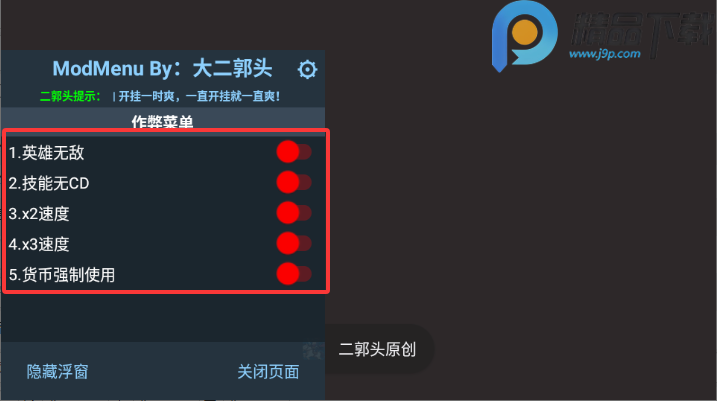 1、游戏中默认开启了内置菜单