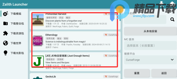 打开ZL启动器,进入游戏资源中心或模组管理界面。