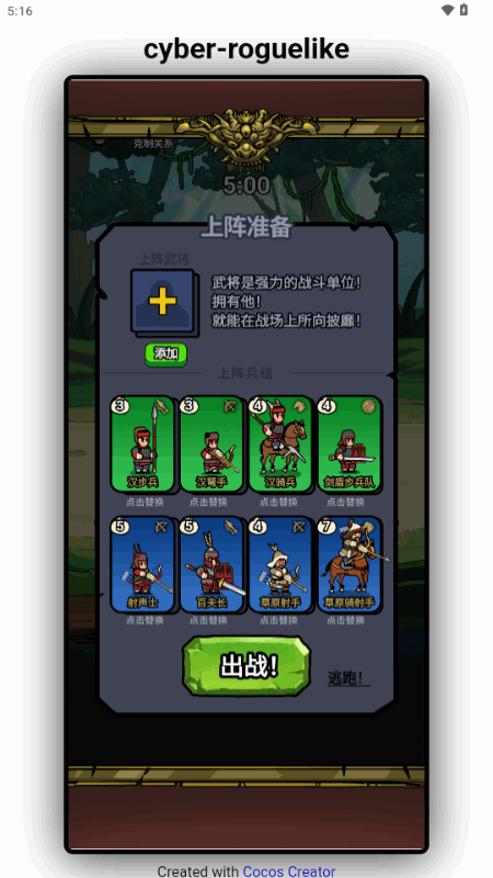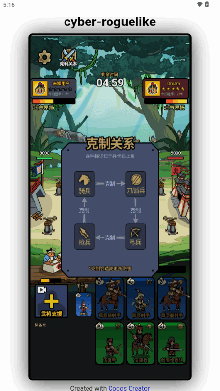 4.战斗中可以召唤武将英雄加入战斗,武将英雄依靠其独特的技能可对兵种进行加成,局外抽卡可以获得武将,在无限对战中武将为一次性消耗品,需持续抽卡保持库存数量。