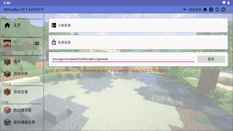 MCinaBox 提供通过在 Minecraft工作目录中配置 Minecraft工作目录的功能。Game Directory