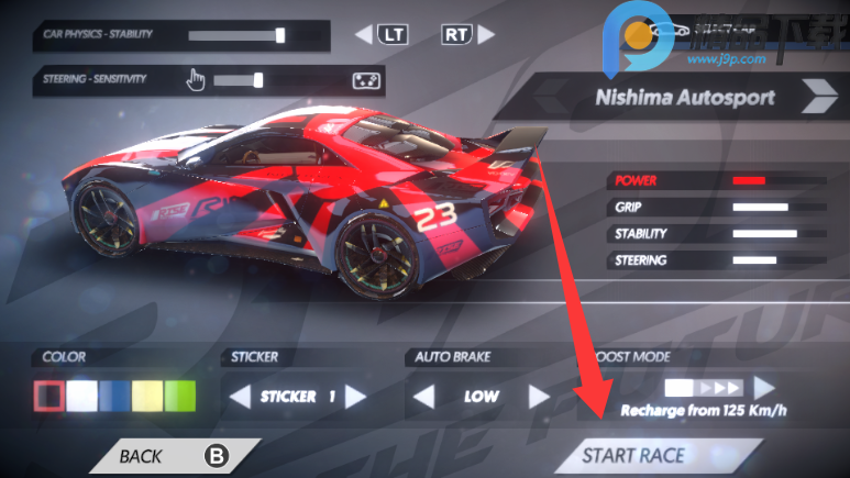 深度自定义与策略:每辆赛车支持3种贴纸与5种颜色自定义,玩家可根据赛道特性调整加速模式、视角及难度等级,通过40公里长的赛道探索最优路线,利用环境互动元素(如水域漂移)实现超车。
