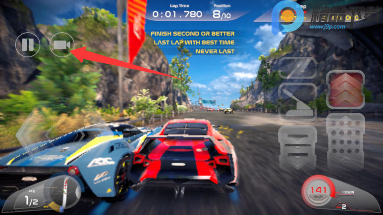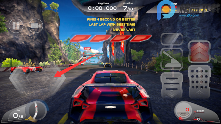 2、进入游戏中之后使用左下角方向键控制赛车,右下角控制加速