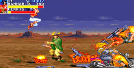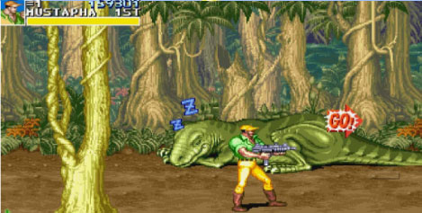 2. 其故事背景设定在公元26世纪,人类重回地面,与因全球变暖、生态好转而再次出现的恐龙发生故事。操作是经典卡普空过关街机键位设置,通过摇杆与ab键组合能打出独特攻击方式。