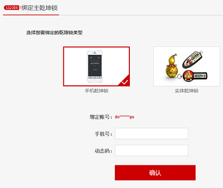 注:目前此方式只用于开启帐号的主乾坤锁。
