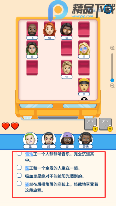 场景与道具利用:游戏提供教室、餐厅、交通工具等多样化场景,部分关卡设有“交换座位”“锁定位置”等道具,合理使用可打破僵局,优化布局。