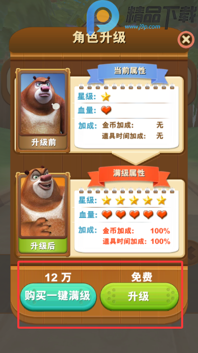 解锁熊大、熊二、光头强等经典角色,每个角色拥有独特技能(如熊二可短暂无敌);搭配萌宠助战(如小松鼠加速、小狐狸自动拾取道具),提升跑酷效率与生存能力。
