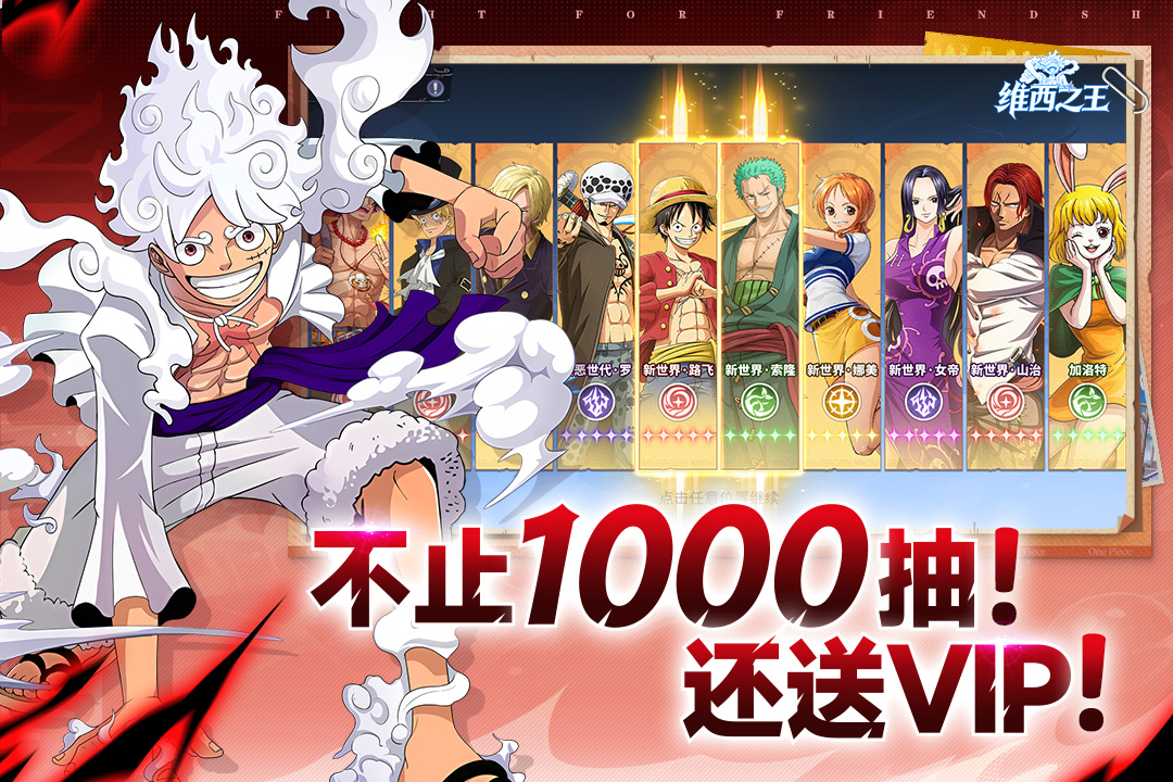 维西之王是航海王题材的策略卡牌手游,玩家可组建航海小队,重温罗格镇誓言、推进城突围等经典剧情。游戏主打快节奏对战,简化操作保留策略深度,登录即送UR尼卡路飞,零门槛开启深海冒险,解锁隐藏传说。