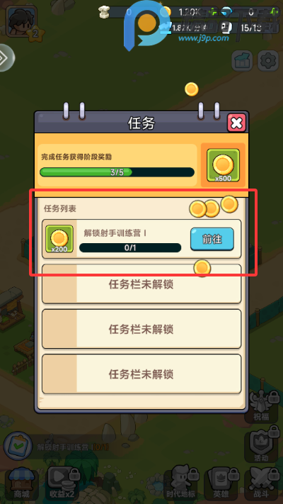4、按照主线任务解锁射手训练营