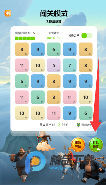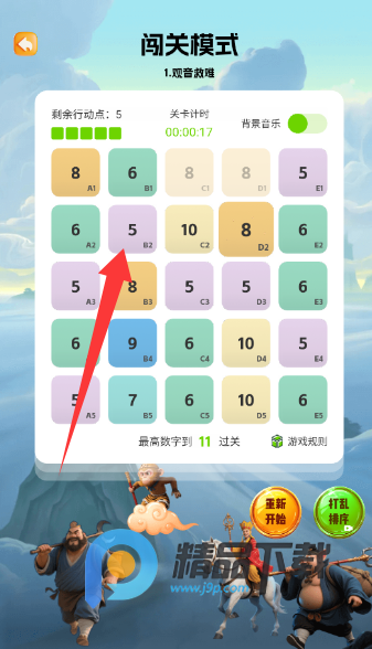 2、在没有数字可以消除时使用打乱顺序道具可以寻找机会
