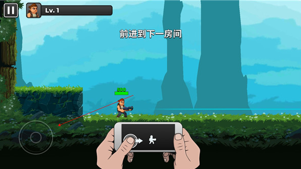 1、通过左下角的摇杆,操控人物前进或者后退。
