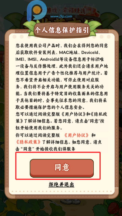 1、同意用户协议进入游戏