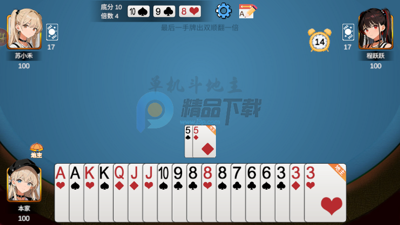 玩法丰富:规则明确,一副牌54张,一人17张,留3张做底牌,在确定地主之前不能看底牌。