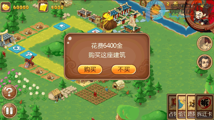 随机事件与策略卡牌:触发“空城计”“草船借箭”等三国主题事件,获得奖励或惩罚;使用锦囊卡(如免租卡、强制交易卡)干扰对手或保护自己。