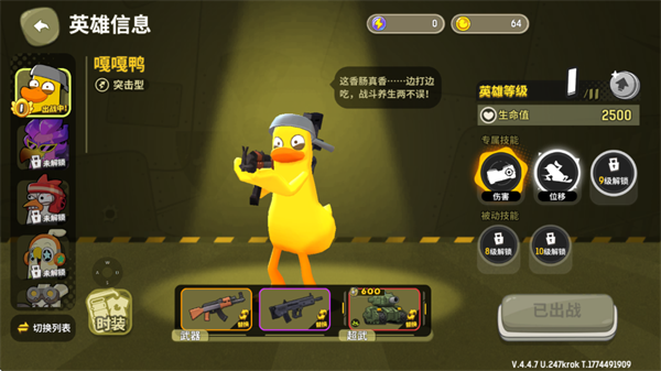 1. 嘎嘎射击有着萌系卡通画风,汇聚了嘎嘎鸭、战斗鸡等可爱动物角色,打造出轻松解压且激情满满的射击战场。